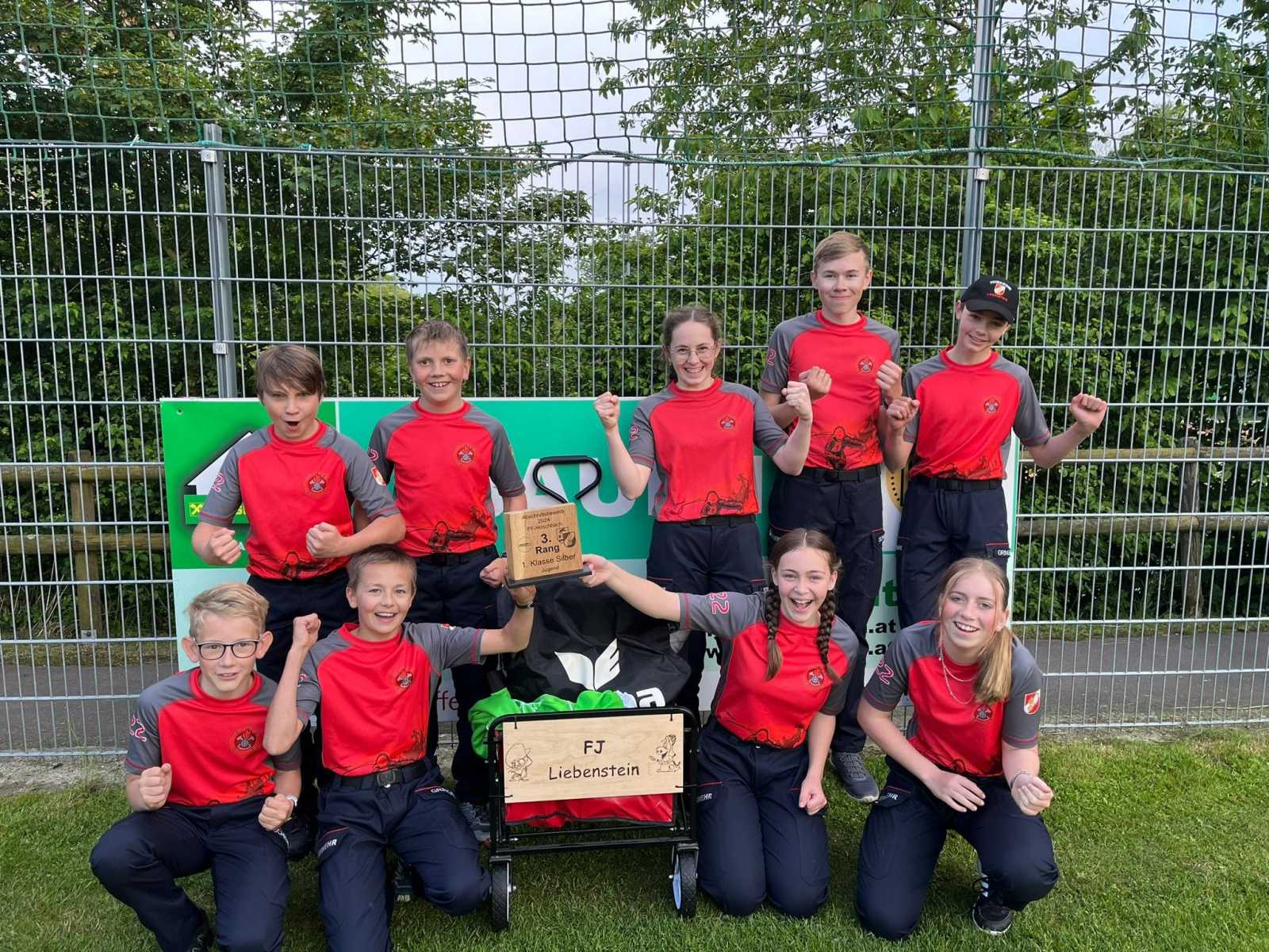 1. Leistungsbewerb – 1. Pokal 4. July 2024 | Aktuelles, Allgemein, Bewerbswesen Am 25. Mai 2024 fand der Leistungsbewerb in Hirschbach statt.Unsere Jugendgruppe erreichte in der 1. Klasse in SILBER den 3. Platz!Wir sind extrem stolz auf euch!!